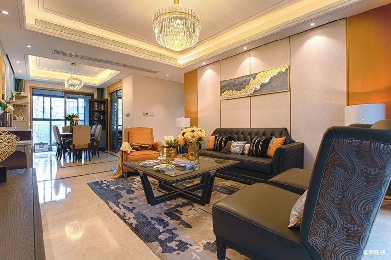 極具時(shí)尚設(shè)計(jì)格調(diào)的透明茶幾,不僅中和了沙發(fā)的厚重感,還令空間更為清透明亮!