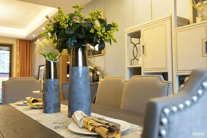 在餐桌上擺放著綠植花藝,百合香彌漫整個(gè)用餐空間,幸福感爆棚~