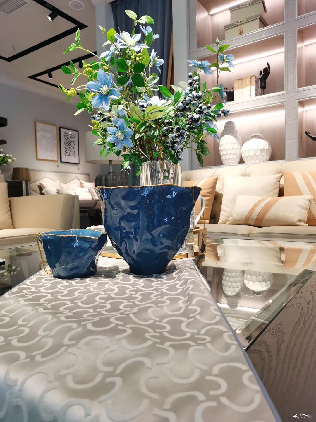 器口形狀各異,摒棄了傳統(tǒng)陶藝的方圓設(shè)計(jì),引領(lǐng)中西結(jié)合陶藝的時(shí)尚特性,金邊鑲嵌,運(yùn)用瓷器染色工藝,由深至淺洗染,以分明暗轉(zhuǎn)折。