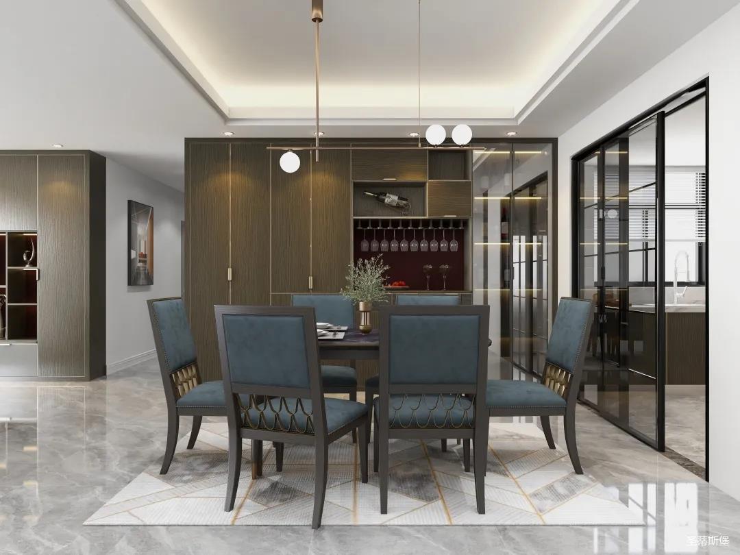 材質(zhì)的交替與光影的變換,具有濃濃的現(xiàn)代簡奢色彩。獨一無二的英倫爵士灰定制柜,由延邊鑲嵌的香檳金拉絲金屬分割,線條流暢且奢華,不僅代表著時尚,也崇尚了實木韻味。設(shè)計師將現(xiàn)代、實用、精致的藝術(shù)設(shè)計風格應(yīng)用其中,更是精致生活方式的藝術(shù)演繹。在平靜的空間中表現(xiàn)出獨特的藝術(shù)骨感,滿足我們對精致生活的精神追求。