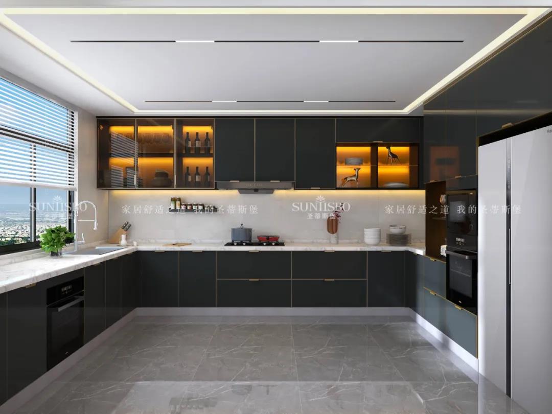 視覺色彩是激活感官的情緒支點(diǎn),以色彩為重心的櫥柜系統(tǒng),喚醒了簡(jiǎn)奢廚房的關(guān)鍵所在。亮色金屬與深色實(shí)木柜體形成撞色櫥柜,極具空間爆發(fā)力。在深色柜體包裹中展現(xiàn)金屬、玻璃、實(shí)木的高級(jí)質(zhì)感,剛毅線條交錯(cuò)延續(xù),一秒就點(diǎn)燃了時(shí)尚潮流的生活態(tài)度。
