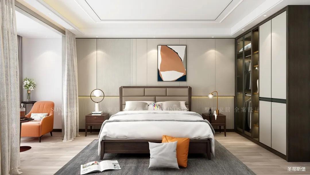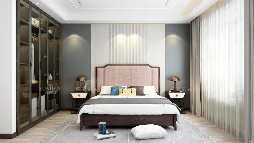 次臥床頭是現(xiàn)代感十足的格柵設計,簡約精致又頗具深度朦朧感。豎條紋的格柵還能起到拉伸視覺的作用,主觀上提高了空間的開闊感。定制衣柜則根據(jù)空間整體的簡約調(diào)性,將開放式與隱蔽收納五五分,散發(fā)出高貴沉穩(wěn)的優(yōu)雅氣質(zhì),和生活品味形成了恰到好處的平衡。