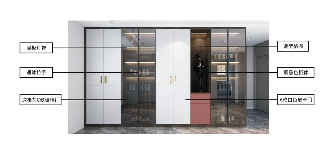 整體配色簡約時尚,花色可選性多;材質(zhì)上采用新型高級材料——歐松板,通過UV漆工藝表面形成超級膚感膜,使接觸面舒適細膩。同時使用線條感簡潔利落的拉手作為設(shè)計元素,子母拉手的設(shè)計別具一格,體現(xiàn)了設(shè)計師的用心;搭配燈光和功能件,使產(chǎn)品極具展示效果與功能性。